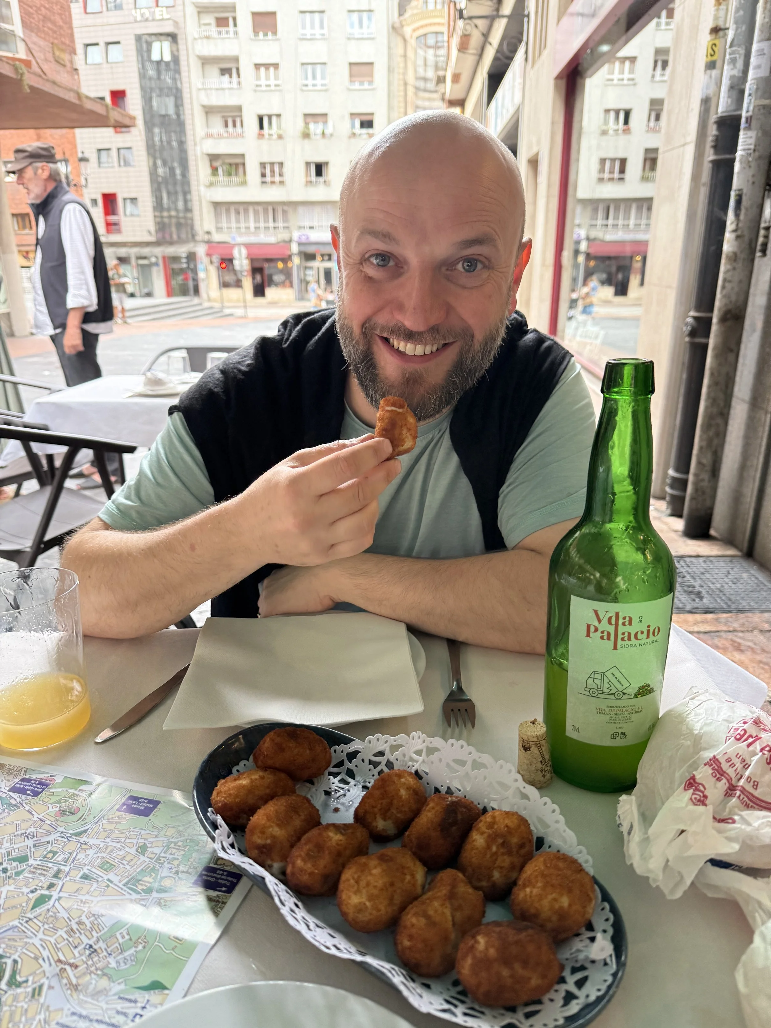 Oviedo itself is a very beautiful town, absolutely buzzing with activity and vibrant with culture… there are museums of art, of archaeology, theatres, concert halls, ancient buildings, pre-Romanesque churches, parks, and endless bars and cafés spilling out onto the small backstreets and squares… such an inviting sight to see waiters constantly swirling in and out between tables, carrying enticing pinchos (small tapas spiked with a wooden pick) for anyone holding a drink!