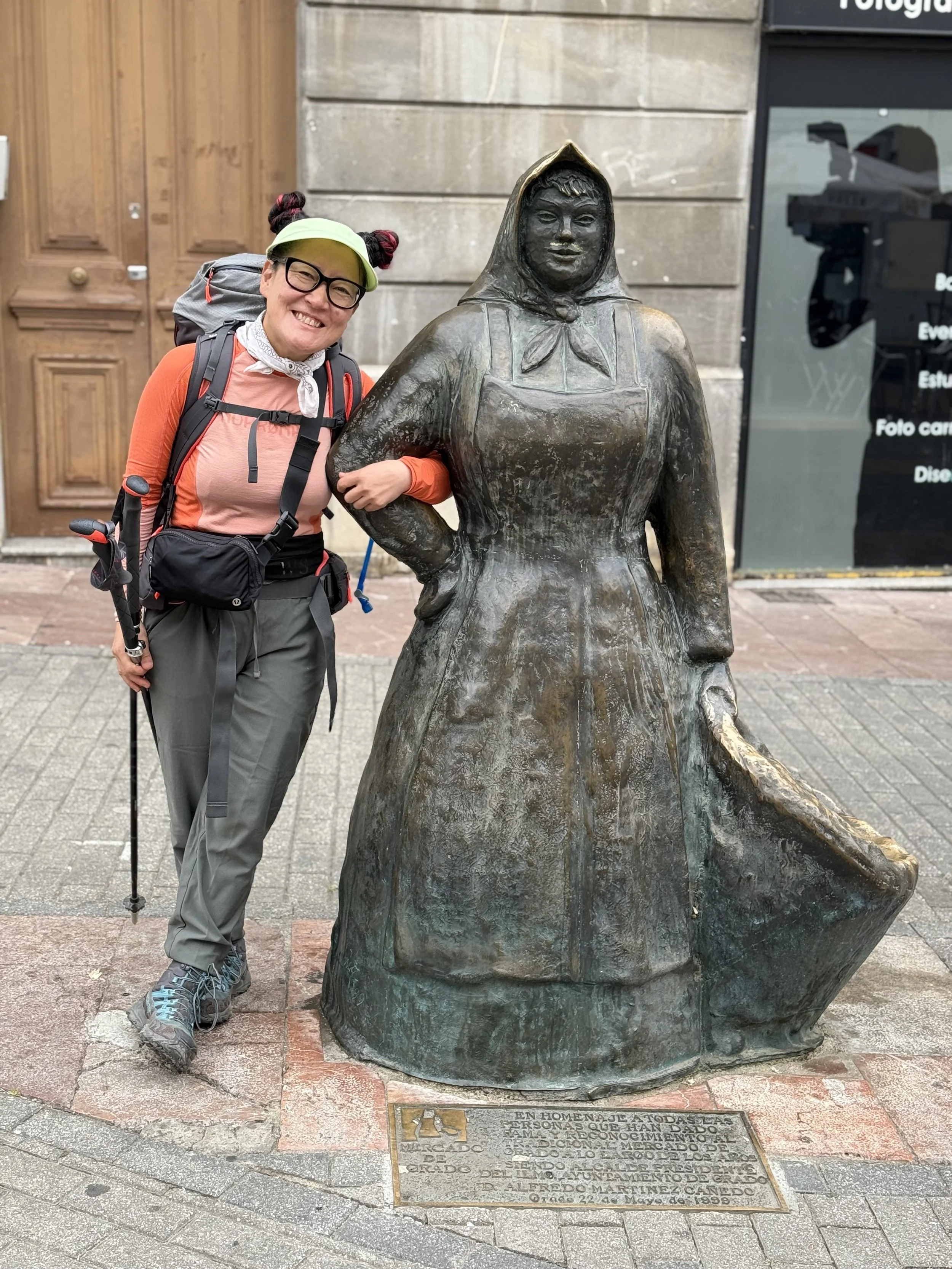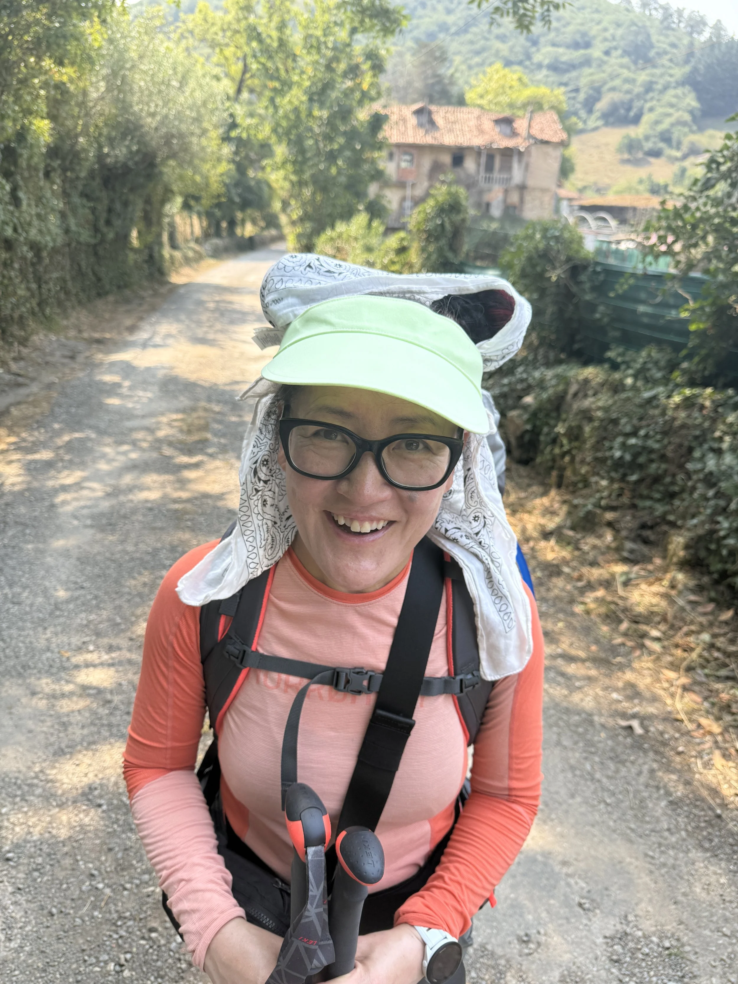 Hamish is a wonderful travel partner and we have great fun walking, talking and often joking. We are very lucky to walk at a similar pace, but walking on tarmac roads is not only a killer for the feet, it is also annoying for the ears, as the walking poles click irritatingly. Hamish’s ingenious idea was to attach fallen apples to the bottom of his poles for the walk along the road to Cornellana. They not only dulled the noise, but added a pleasing pendulum swing to his stride.