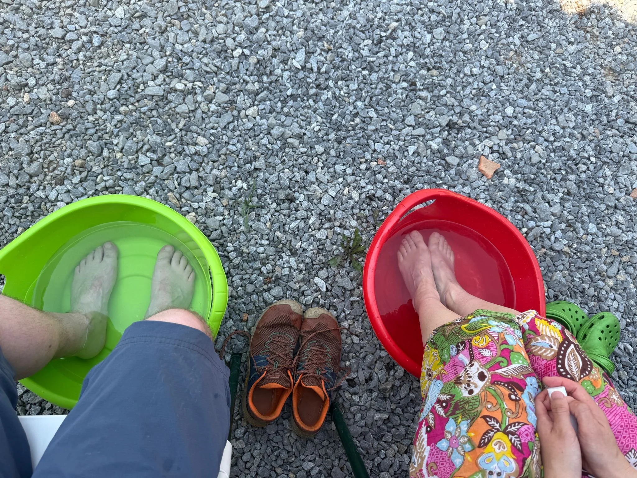 We put our feet into buckets of cold water, sitting in the sun. Bliss. Then we showered, did our laundry and hung it out in the heat of the sunny courtyard.
