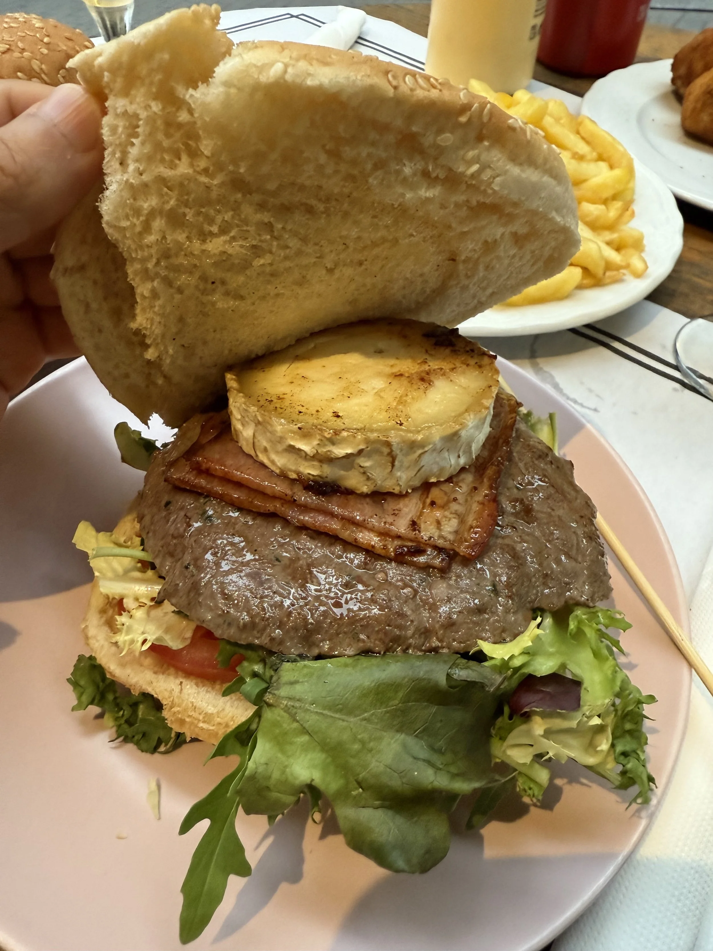 Hamish was intent on a burger and beer for his birthday dinner and we discovered a lovely characterful bar up a side street, called La Griega. Hamish was particularly taken by the little stools which had been designed with uneven legs, to be able to sit flat on the steep hill we were on.