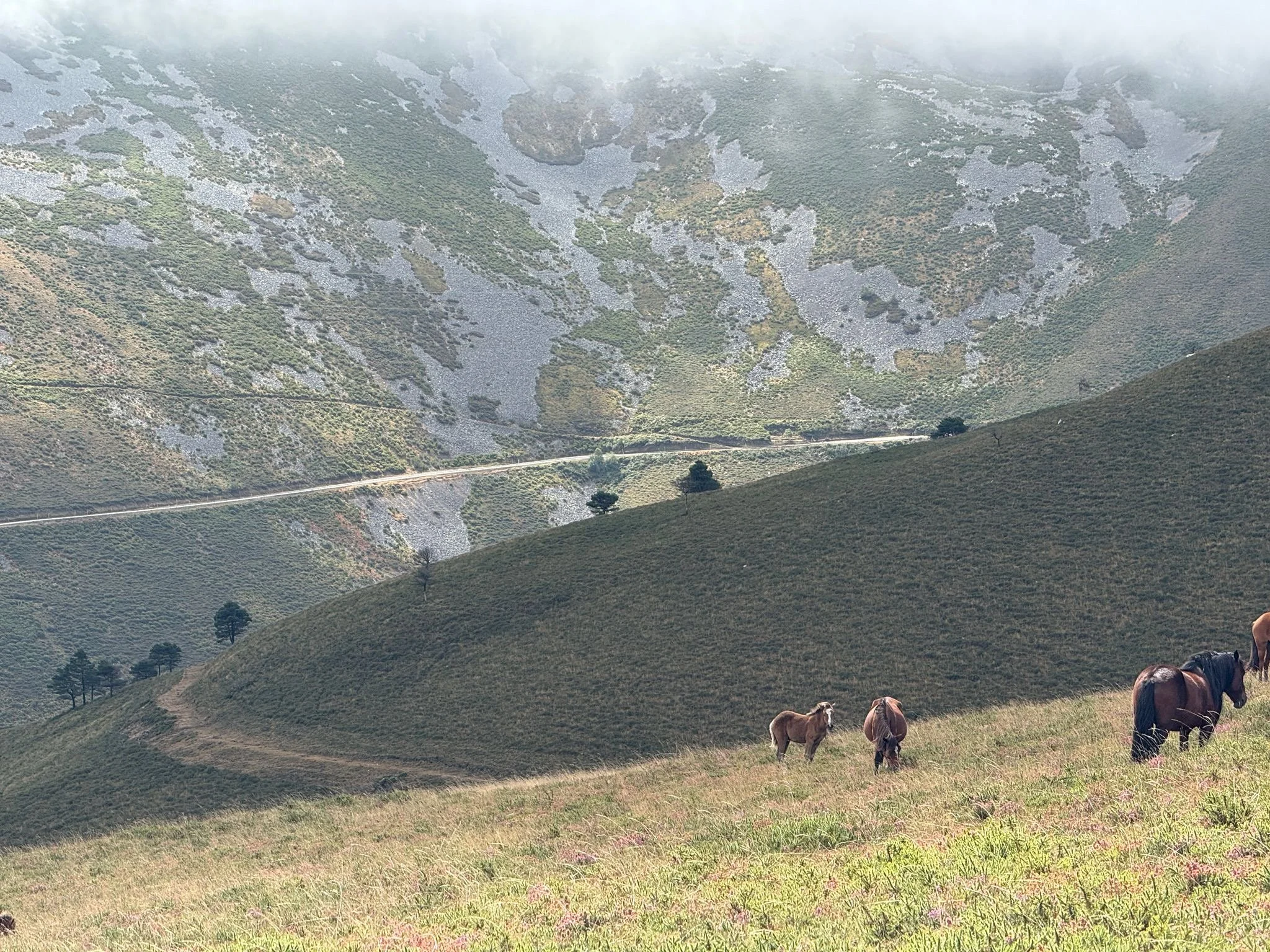 The scenery today was spectacular. High plains and undulating hills akin to many Scottish hills. There were many wild horses on the steep hills…which is not such a Scottish sight.